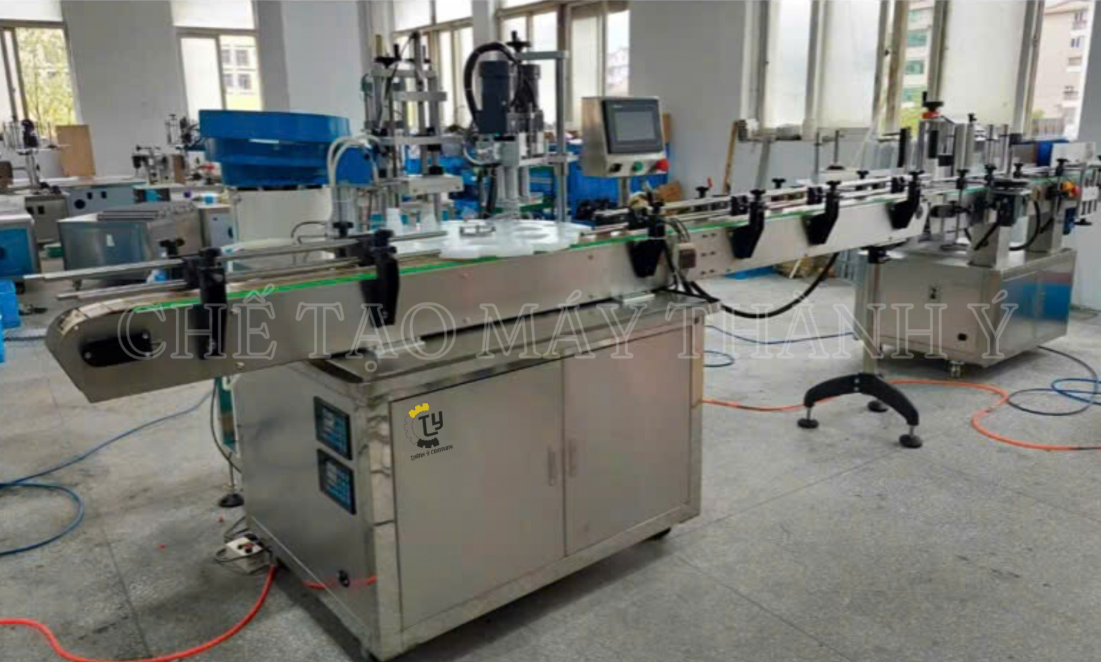 Thiết bị thực hiện đồng thời nhiều công đoạn như chiết rót, đóng nút và vặn nắp, phù hợp cho việc sản xuất các sản phẩm dạng lỏng đóng chai như siro, nước uống hay dung dịch khử trùng. Ngoài ra, dây chuyền có thể tích hợp thêm các thiết bị phụ trợ như máy dán nhãn để nâng cao mức độ tự động hóa. Với thiết kế tối ưu, máy vận hành ổn định, dễ sử dụng và thuận tiện trong bảo trì, đồng thời đáp ứng các yêu cầu nghiêm ngặt của tiêu chuẩn GMP hiện hành.