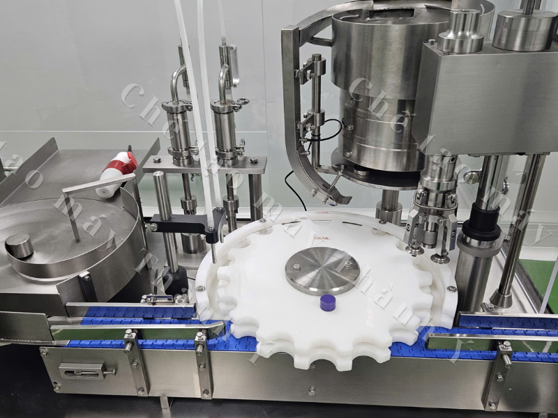 Máy chiết rót có nhiệm vụ định lượng và chiết dung dịch lỏng vào chai, lọ hoặc bao bì theo dung tích cài đặt. Thiết bị cho độ chính xác cao, vận hành ổn định, phù hợp với nhiều loại dung dịch khác nhau. Máy có thể tích hợp thêm các công đoạn như đóng nắp, dán nhãn tùy theo nhu cầu sản xuất.