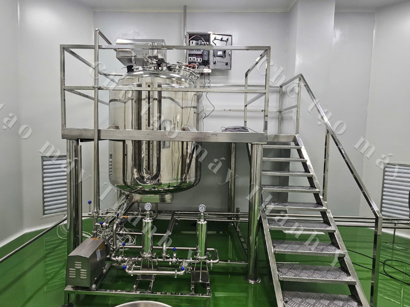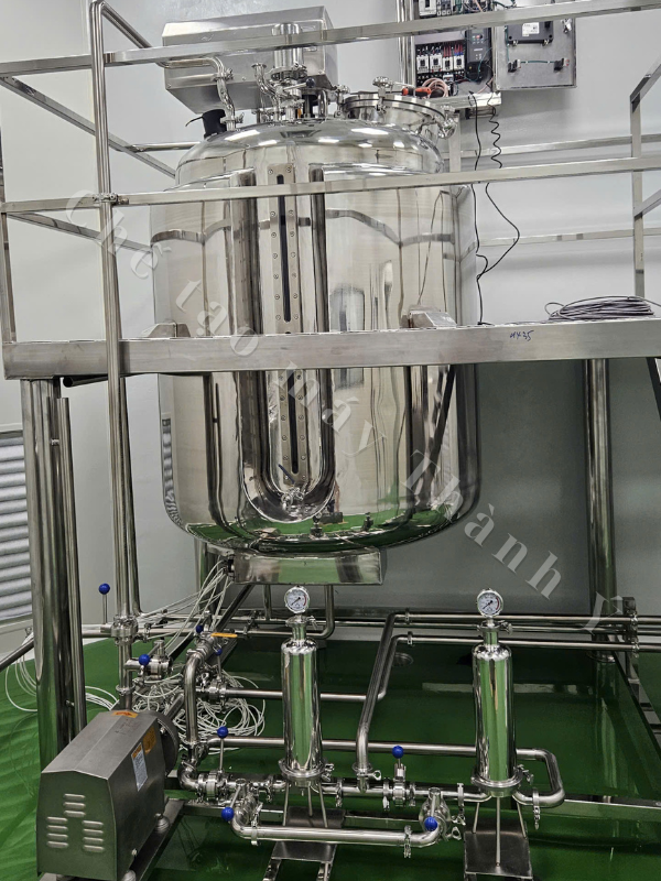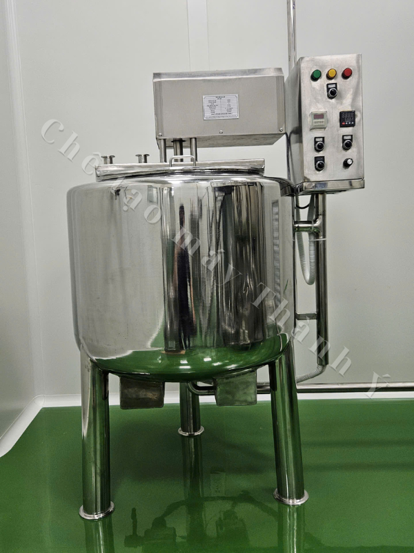 Tank tiền pha chế có chức năng hòa tan ban đầu các nguyên liệu như dược chất, tá dược, dung môi. Thiết bị thường được trang bị cánh khuấy, gia nhiệt bằng hơi nước hoặc điện trở giúp nguyên liệu tan nhanh, đều, hạn chế vón cục. Công đoạn này giúp chuẩn bị dung dịch nền đạt yêu cầu trước khi chuyển sang pha chế chính.