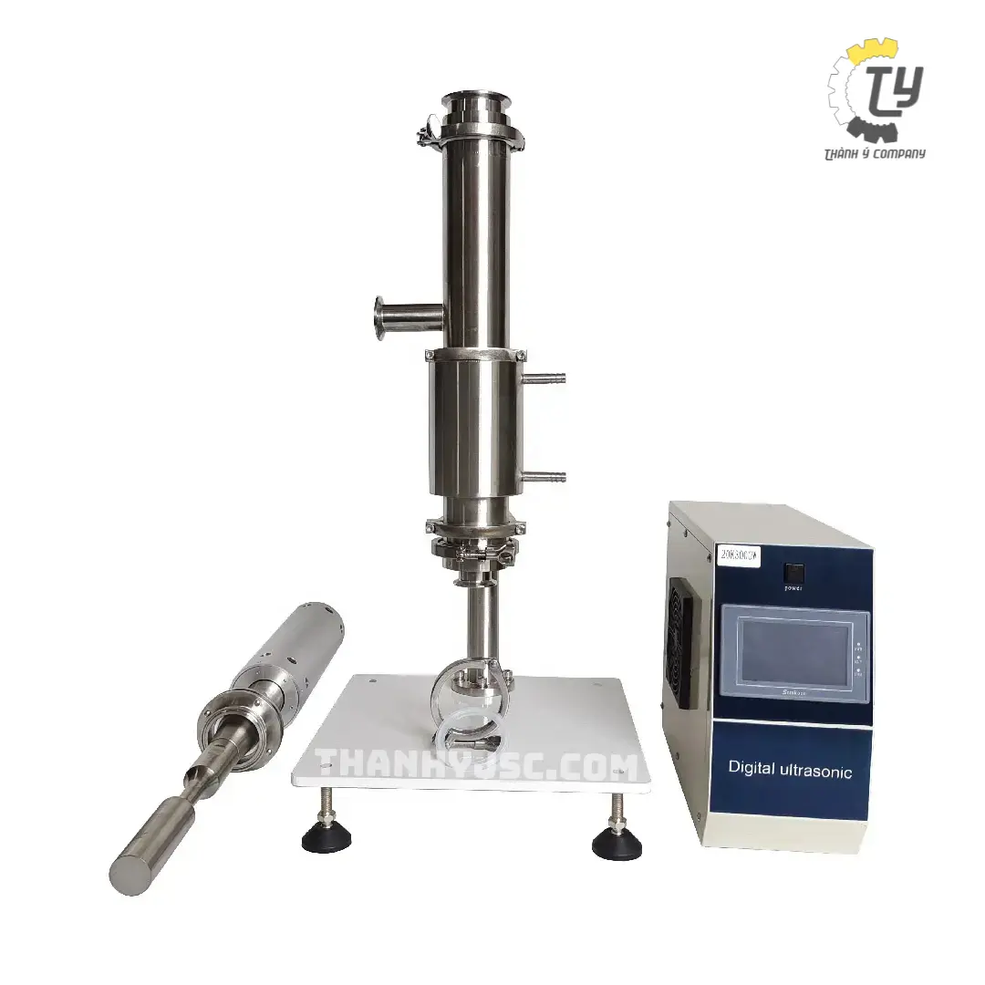 Máy trộn đồng hóa siêu âm là thiết bị công nghiệp cao cấp, sử dụng công nghệ cavitation (xâm thực) siêu âm tần số 20kHz để phân tán pigment, tạo nhũ tương nano và đồng hóa các vật liệu khó tan như TiO₂, SiO₂, ZnO. Máy tạo ra sóng siêu âm mạnh mẽ, giúp phá vỡ cấu trúc hạt, tạo kích thước siêu mịn và đồng nhất cao.