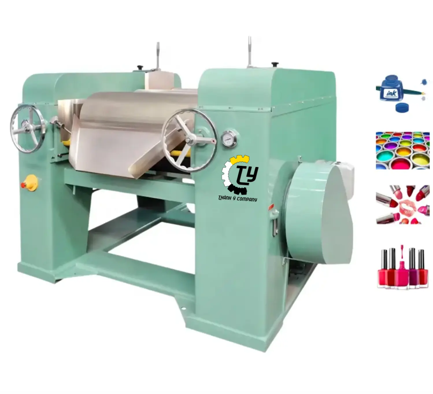 Máy nghiền ba trục tạo màu là thiết bị chuyên dụng trong ngành sản xuất mực in, sơn, nhựa, và các sản phẩm có màu sắc như phẩm màu, mỹ phẩm. Máy hoạt động bằng cách sử dụng ba trục song song quay với tốc độ khác nhau, tạo ra sự ma sát mạnh mẽ giữa các trục và vật liệu, giúp phân tán và nghiền nhỏ các hạt màu để đạt được độ mịn và đồng đều cao.